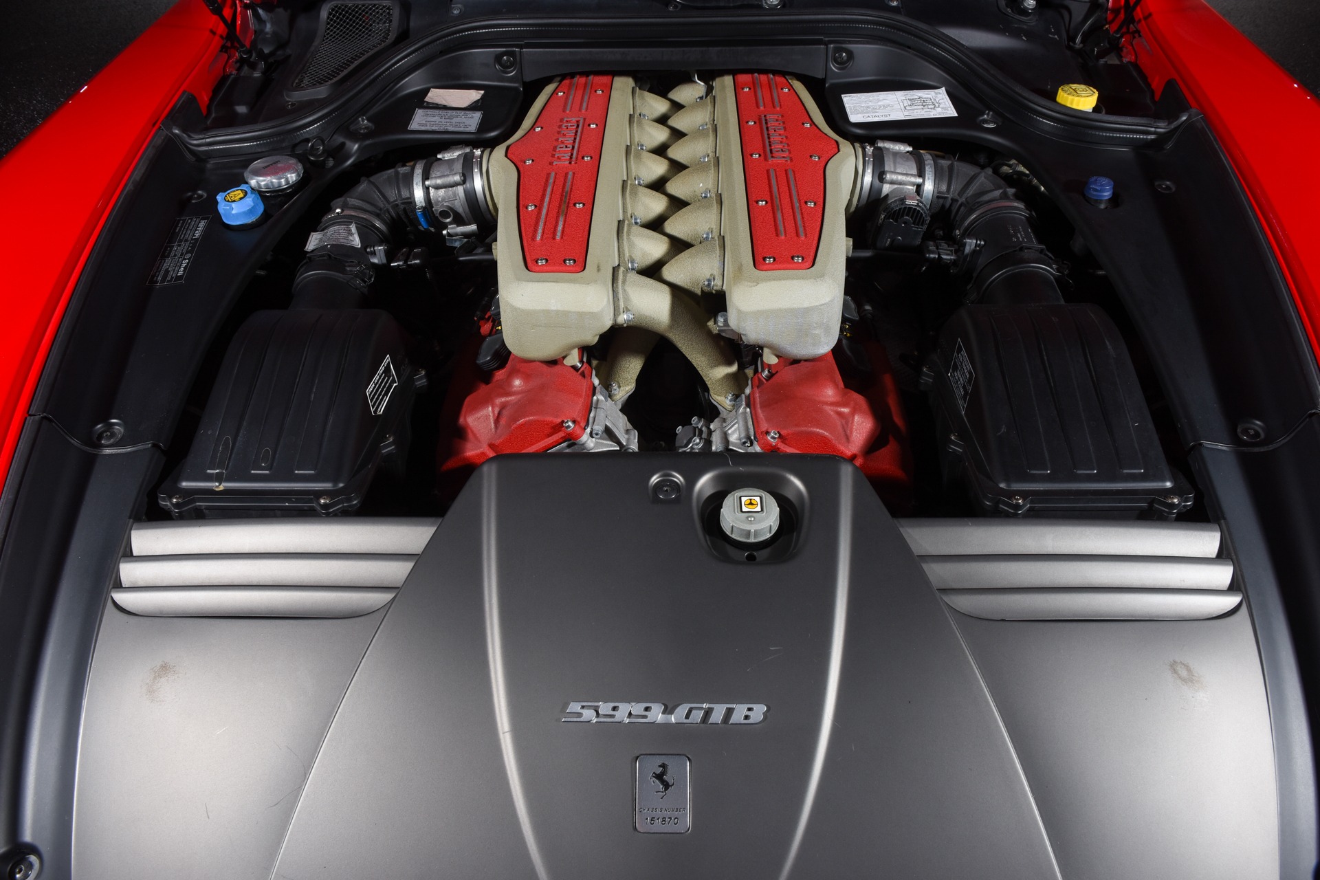 Model Highlights: An avant-garde interpretation of the celebrated Ferrari 365 GTB/4 Daytona constructed entirely out of aluminum; upon arrival was Ferrari's most aerodynamically coherent front-engined V12 road-legal car to have left the factory with one of the 599's most peculiar exterior design traits aiding in this phenomenon is courtesy of the rear's distinctive flying buttresses which are intriguingly set on either side of the signature wrap-around-window and drastically directs airflow to the trunk lid's nolder; second to the Enzo, is a model that was the brand's most powerful naturally-aspirated road-going car upon its debut and is the second to last V12 Ferrari to have been penned by Pininfarina; was Ferrari's first street-legal model to be outfitted with the Formula 1 developed F1-SuperFast gearbox which offers blisteringly quick shifts, Magnetorheological Suspension Control (SCM) active suspension system and the active F1-Trac traction control system that was solely made available in Ferrari's F1 applications; utilizes the Enzo's engine architecture (along with the similar multi-display instrumentation unit ) and is also an engine that served as the starting point for the one employed in Ferrari's motorsport-only FXX; an enhanced manettino system (steering wheel located switch) that works in tandem with the transmission, traction control and suspension systems and features Low Grip, Race, Sport, CST off and Ice modes; the rear-wheel driven 599 is powered by a vigorous 5.9-liter V12 engine rated at 612-hp with an awe-inspiring 8,400 rpm redline and is responsible for the suspenseful, specifically tuned soundtrack; 0-60 time of 3.6 seconds with a top speed of 205 mph.