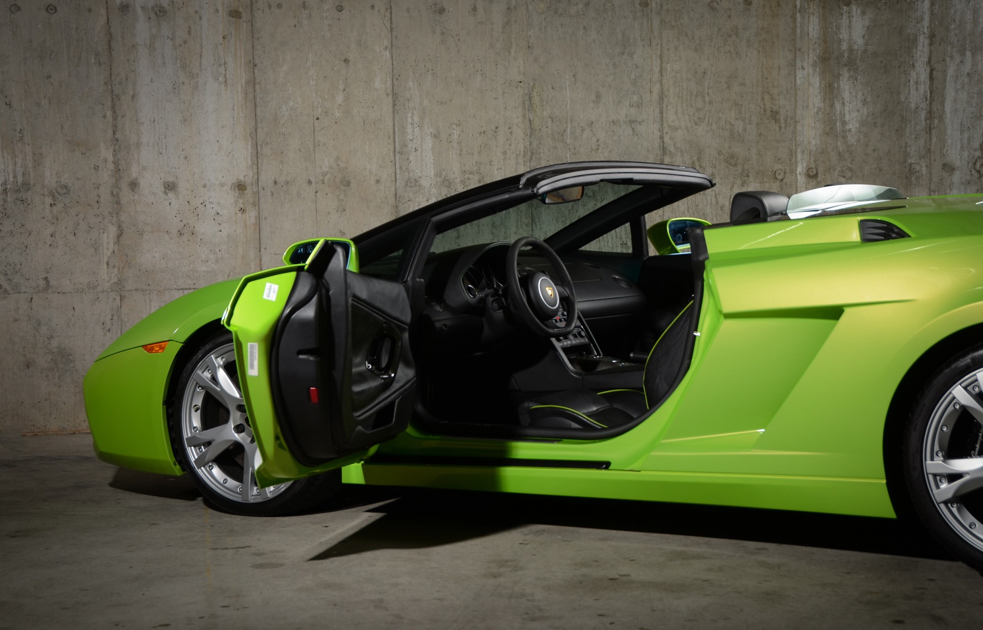 2006 Lamborghini Gallardo E-Gear Spyder: Draped in the hyperly sought-after, infrequently seen, and alluringly vibrant green hue of Verde Ithaca with a Nero Perseus Leather cabin that is aesthetically complemented by green piping and stitching, Carbon Fiber trim on select interior surface areas, and a suede-wrapped steering wheel. For the 2006 model year, around 1,025 Gallardo Spyders are said to have the 2006 model year designation. Displays an odometer reading of only 15,XXX miles and shows a Clean CARFAX Report. Equipped with a Front Lift System, Heated Seats, Navigation System, black-finished soft top, along with other favorable features. A profound characteristic from the first generation Gallardo is its engine's even-firing order which causes for a beautifully brutal, old-school F1 encompassing tone allowing for a delectably dramatic experience.